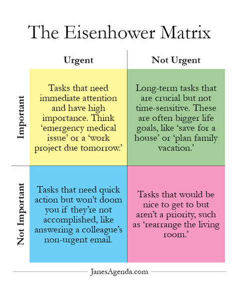 “I have two kinds of problems: the urgent and the important. The urgent are not important, and the important are never urgent.”